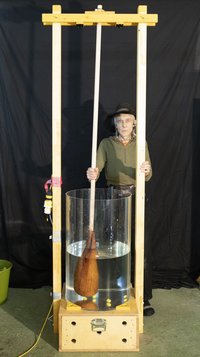 Demonstration des einstündigen Rührens von Hornmist und Hornkiesel in einem durchsichtigen Gefäss mit spezieller Beleuchtung von unten und ohne Präparat, welches das Wasser trüben könnte.